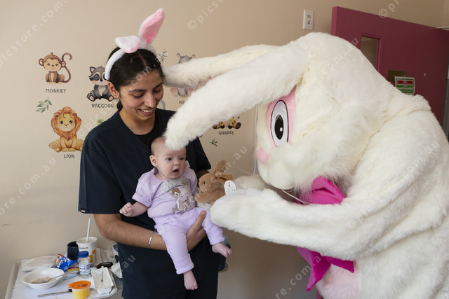 Nurse Jaspinder Kaur and Aaliyah 2months. Bunny gifting toy bunny to Aaliyah_Ljubica Vrankovic_471430_05