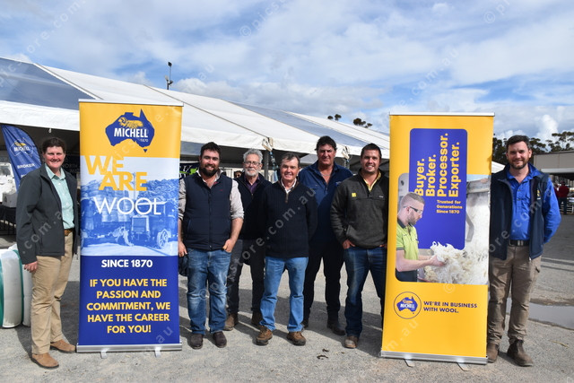 Northern Merino Expo committee members who organised the day are Alison Henderson, Hayden Hillman, Ian Bradtke, Tom Ashrose, Stace Bradtke, Sam Krieg, and Hayward Paynter. (Harry Mead: 494982)