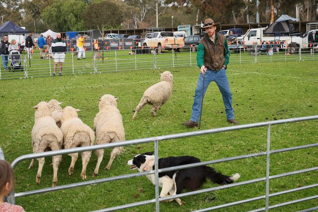 Jono Liebelt with Kenzie the sheep dog demonstrating their skills. (Michael Slattery: 498294_03)