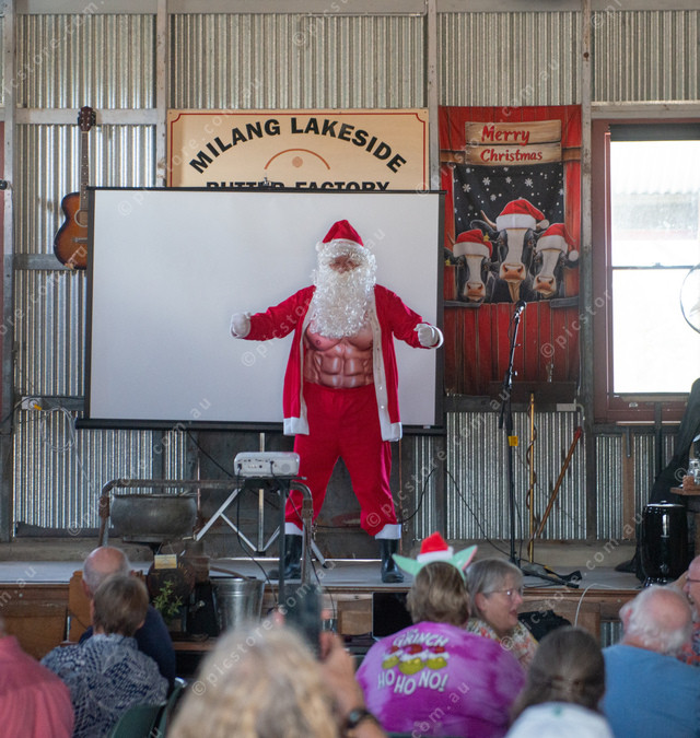 Santa Claus made a special appearance at the lunch, showing off his workout progress. (Jack Church 525013_04)