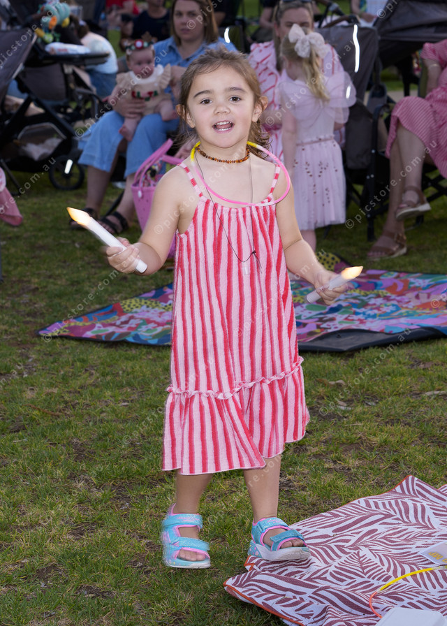 Ivee Taylor dances to the carols at the Mildura Carols by Candle Light held at Nowingi Place in Mildura on Saturday 13 December 2025.