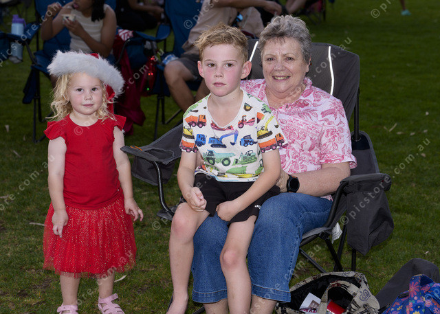 Evy and Toby Mihan with Nanna Heather at the Mildura Carols by Candle Light held at Nowingi Place in Mildura on Saturday 13 December 2025.