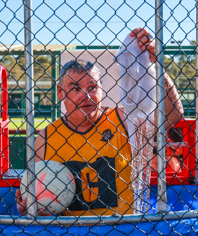 District Council of Yankalilla economy and tourism manager Darren Burgess retrieves his wig from the tank. (Jesse Ehlers: 482034_02)