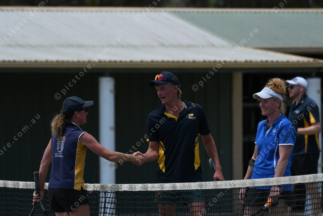 Colby Ackland and Megan Parish come in to shake hands with their Balaklava opponents at the end of the set. (529261)