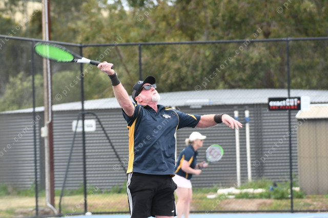 Balaklava’s Mark Loy about to smash a net shot. (Lisa Schulz: 519792)