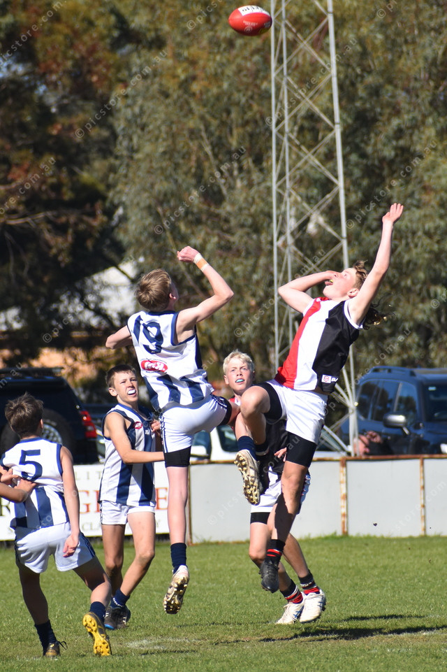 Northern Areas’ Oskar Stroeh and Adelaide Plains’ Curtis Willmer contest the ruck. (493907)
