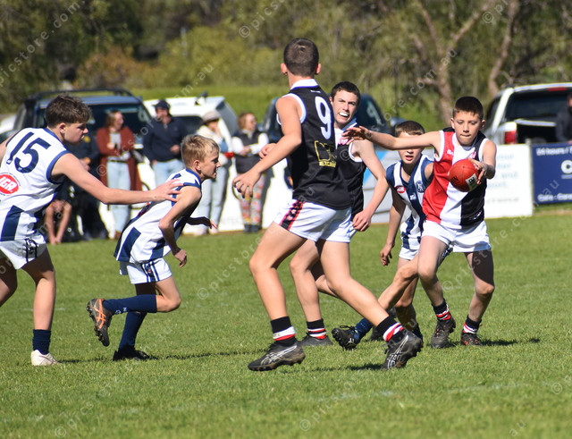 Adelaide Plains’ Hudson Pilaia kicks towards goal. (493907)