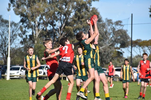 North Eastern’s Beau Bavistock takes this contested mark in front of Yorke Peninsula’s Patrick Papps. (493907)