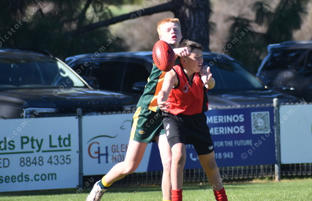North Eastern’s Lachie Agars spoils the ball against Yorke Peninsula’s Albert Cock. (493907)