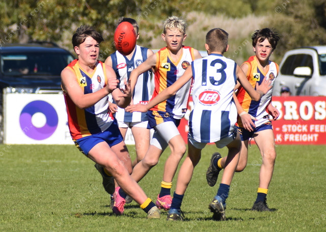 Barossa Light and Gawler’s Jack Coutts handballs past his Northern Areas opponent. (493907)