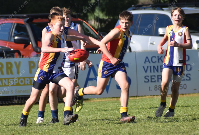Parker Mattner about to clear the ball out of the defensive 50. (493907)