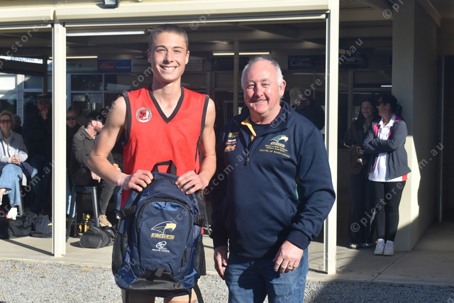 Yorke Peninsula best player Eli Lawson with Woodville-West Torrens talent manager Darren Hams. (493907)