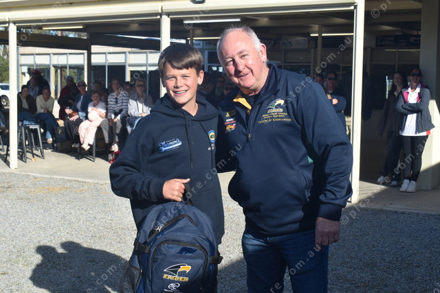 North Eastern best player Sam Hayes with Woodville-West Torrens talent manager Darren Hams. (493907)
