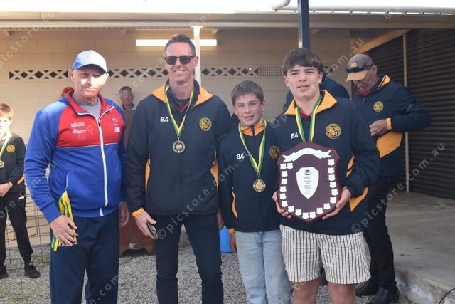 Central District talent manager Scott Stevens with the victorious Barossa Light and Gawler coach Jamie Sibbick and captains Jack Coutts and Taj Salter. (493907)