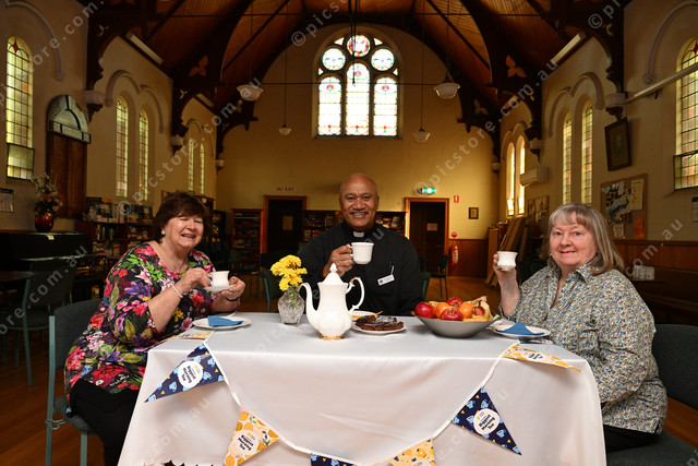 Biggest Morning Tea at St Andrews Uniting Church, Sunbury. Pic of Dianne Moon, Rev Faimatau Leota and Carole Simpson. Photo by Damjan Janevski. 477315_04