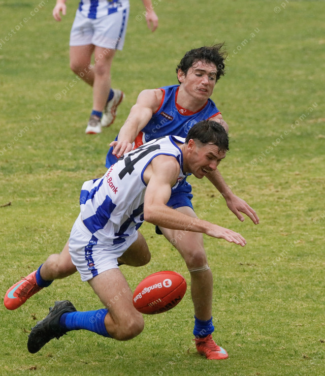 Lincoln City’s Colby Syvertsen and Lincoln Districts player Troy Chamberlain battle for the ball. (483450_25)