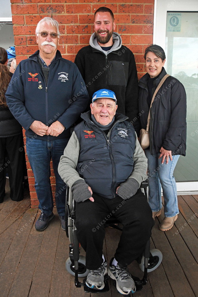 FOOTY SHORTS Pearcedale legend John Martello (front) with Trevor Ellery, Sam Martello and Mandy Steadman after the win 499249_21
