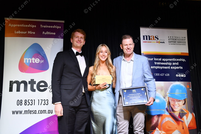 Second Year Apprentice Excellence Award runner up Hannah Tiver, middle, with award presenter Billy Brigham and Remote Air Services representative.