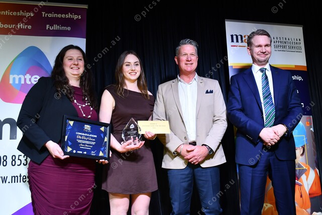 School Based Trainee of the Year runner up Jazz Sharrad, centre left, with The Turf Farm representative and award presenters Rick Simunsen and Cameron Baker.