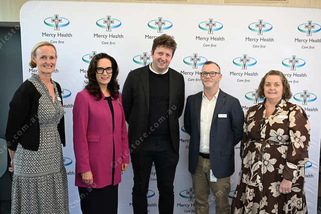 Mercy Health. Pic of (L-R): Amanda Howard Project Manager; Angela Nolan, CEO; Brendan Pawsey, General Manager Mental Health & Wellbeing; MP John Lister; and Andrea Kavanagh, Division Director. (Damjan Janevski). 498236_03