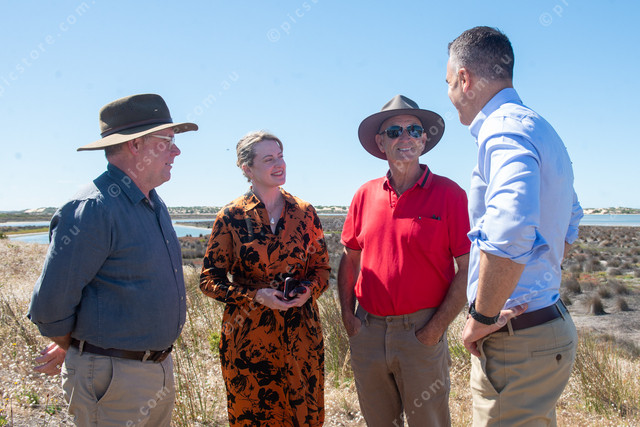 Murray Watt, Lucy Hood, Colin Grundy, and Peter Malinauskas at Mundoo Island Station. (Dani Brown: 527284_03)