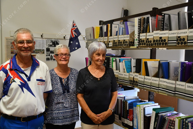 In the Grace and Trevor Aitchison History Room; Ron and Cathy Whyte with Nola Russell (Neralie Bailey: 463362_03)