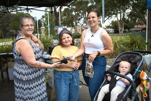 Christine Deane of Earings Galore with customers Khalida Castledine, Phoenix Bell and Aster Bell. (508492_13)
