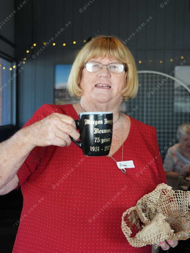 Reunion organiser Pam Berlin had a box of commemorative mugs made for the occasion. 536727_02