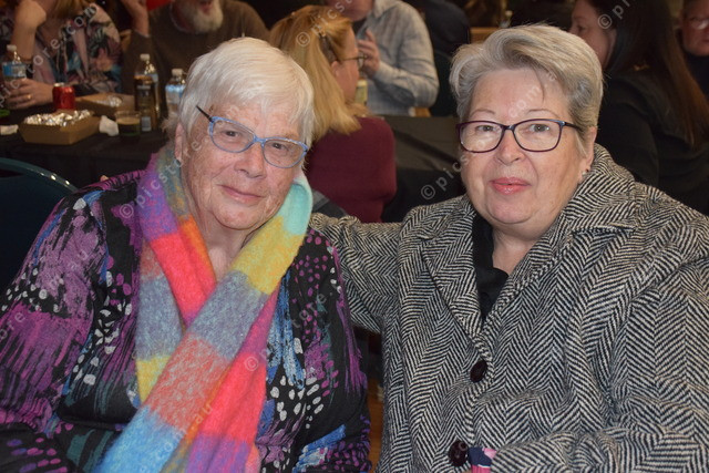 Barbara Lawrence Smith and Sue Chandler rugged up and ready for a fun night out at the Civic Centre.