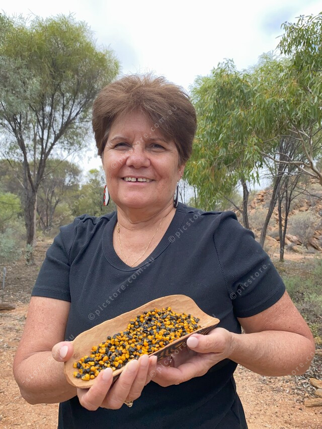 BUSH TUCKER: Rayleen Brown with wattleseed, a seed harvested in the wild in Central Australia. (Charles Geary: 468661_01)