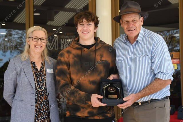 Rural City of Murray Bridge mayor Wayne Thorley (right) and deputy mayor Airlie Keen (left) presented Robert Coyne-Beck with the Sportsperson of the Year Award.
