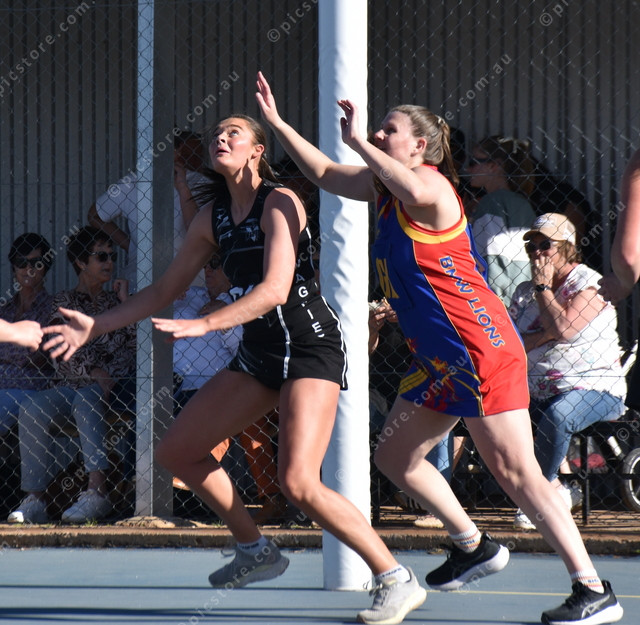 Macy Kitschke and Kimberley Thomson await the high ball. (502016)