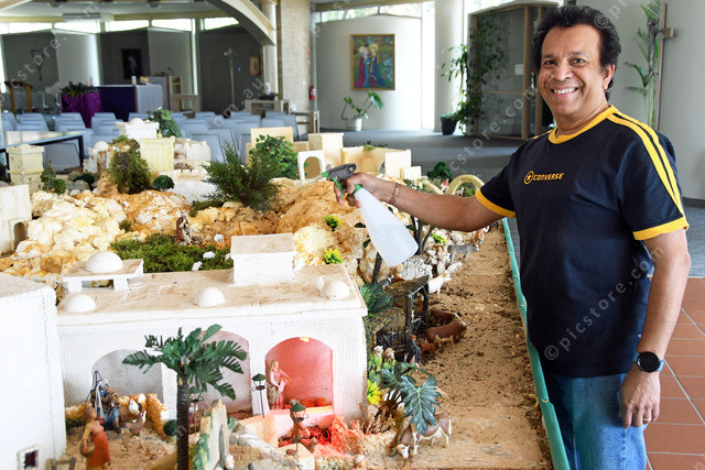 Wilson Fernandez watering the living plants in nativity 524279_03
