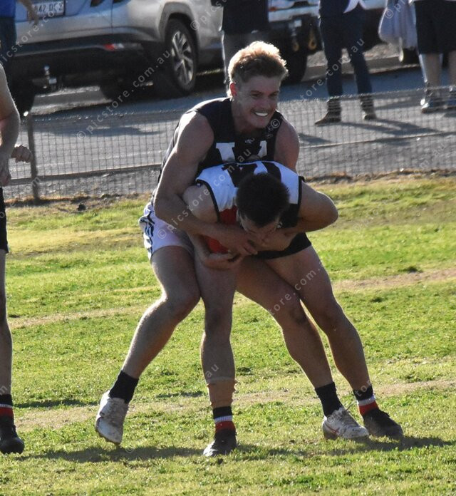 Hawk Ryan Bruce wraps up Angus Handke. (501637)