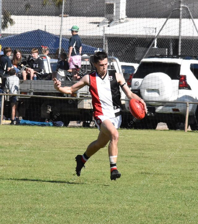 Saint Angus Handke clearing the footy out of defence. (503318)