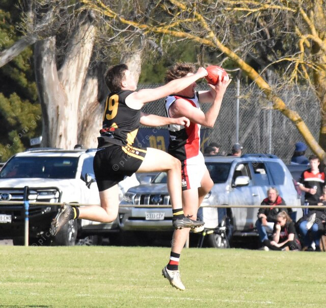 Saint Tarik Sauer marks in front of Ryder Hayes. (503318)