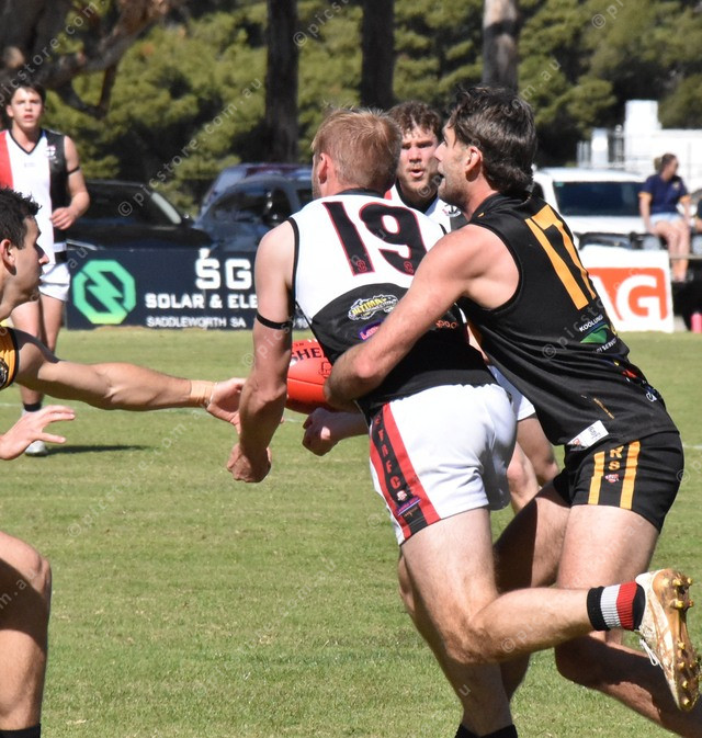 Tiger Jackson Lee gets hold of Coby Helyar. (503318)