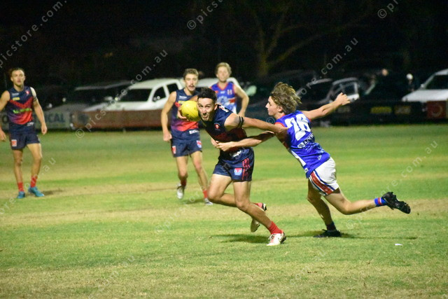 South Clare’s Matthew Bennie shrugs off the challenge from BBH’s Hayden Webster. (474296)
