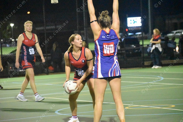 South Clare’s Jade Chapman looks for an option past BBH’s Amelia Squire. (474295)