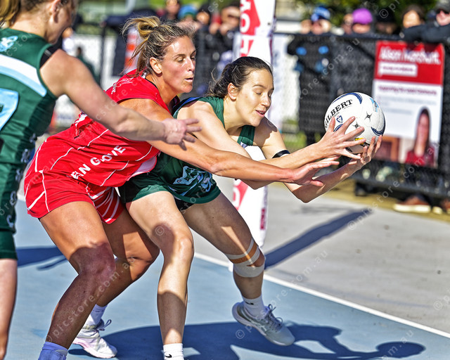 Kim Hammond takes possession in a tight contest with Amanda O’Malley (Ivan Kemp) 498804_21