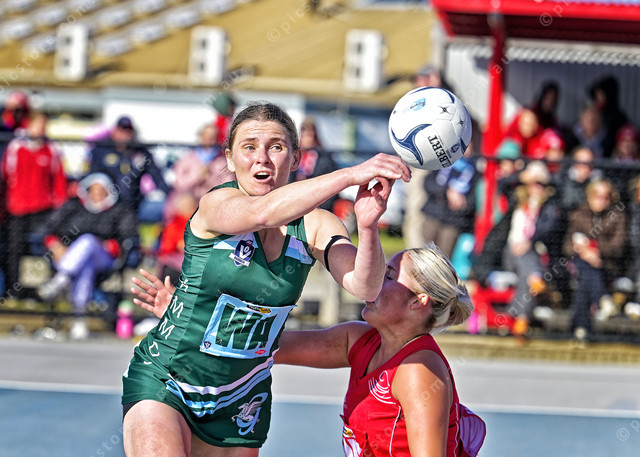 Kaitlyn Sheringham passes as Gemma Bell goes to ground (Ivan Kemp) 498804_22
