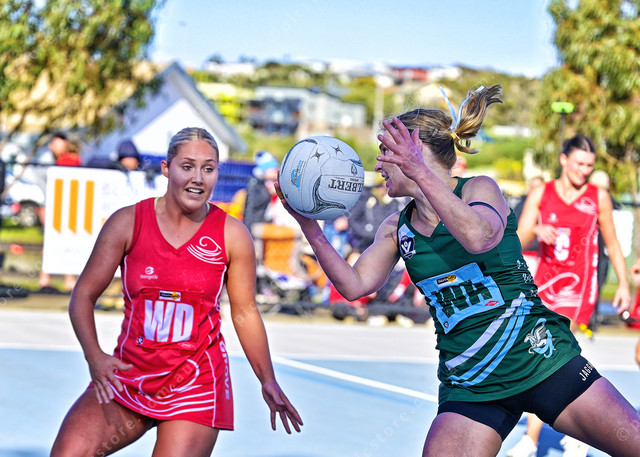 Kaitlyn Sheringham takes the ball in front of Gemma Bell (Ivan Kemp) 498804_29