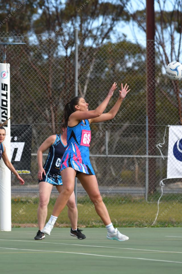 Jacoba Clough, Mallee Storm, gets ready to catch the ball in the A Grade match against Imperials on Saturday.