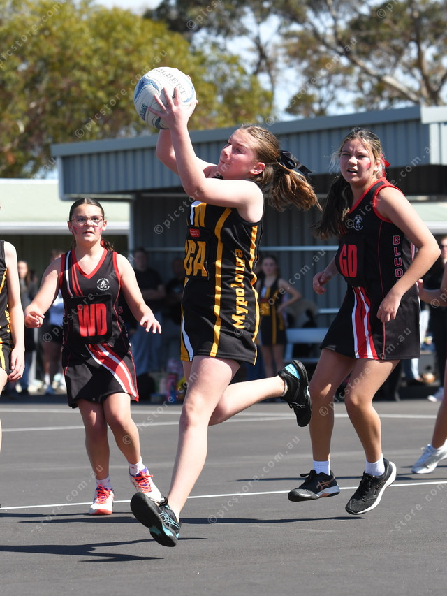 Alexis Schutz, Mypolonga, goes for the ball in the Junior 2 grand final against Jervois. (William Bailey: 503967)
