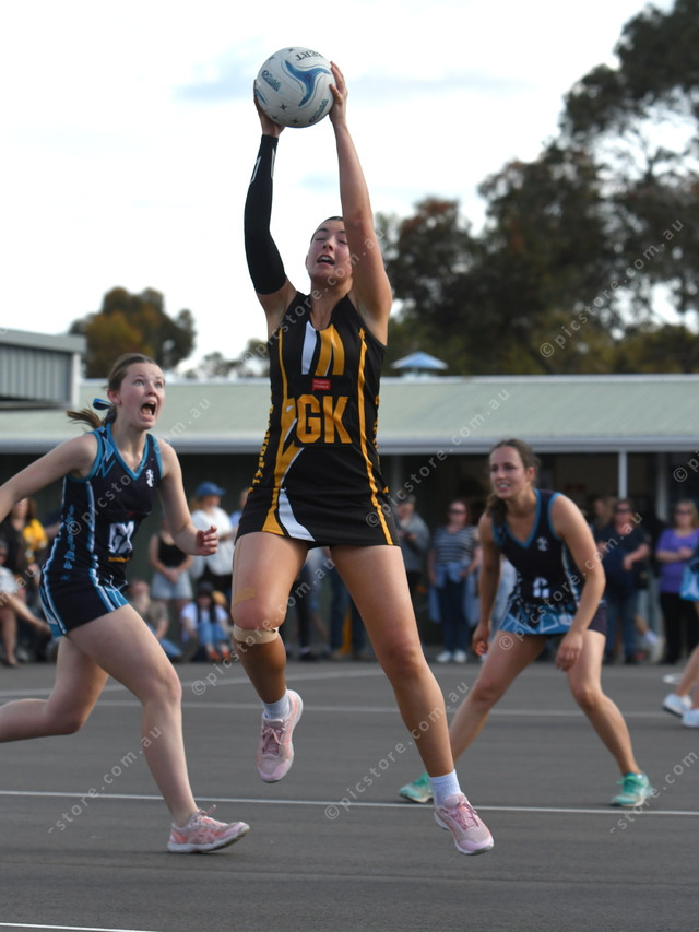 Rhea Kempe, Mypolonga, reaches for the ball during the B Grade grand final against Imperials. (William Bailey: 503967)