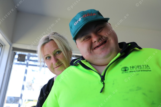 Support worker Michelle Elvery, Hamilton with handsome Bryon Gardiner, participant, from Hamilton.