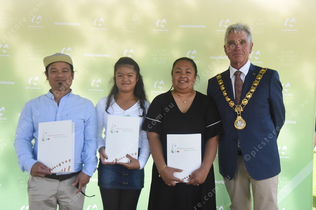 Carmi Lee Magapan, Julius Magapan and Sarah Asher Magapan with mayor Patrick Ross.