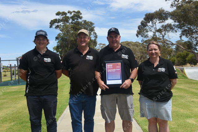 Archie Ludwig, Ben Ludwig, Ian Rollands and Melina Ludwig from Lucindale Karting Club, which won Lucindale Community Event of the Year