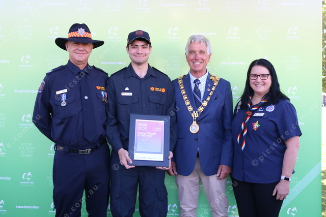 Steven Miles with joint Young Citizen of the Year Ashley Miles, Mayor Patrick Ross and Anita Miles.