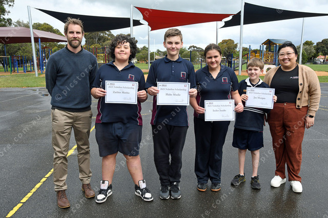 Ben Nobelius and Amy Lines from Nobelius Land Surveyors with students Zaiden Merito, Blake Mudie, Indee Isaaks and Jax Morgan 520513_09